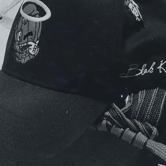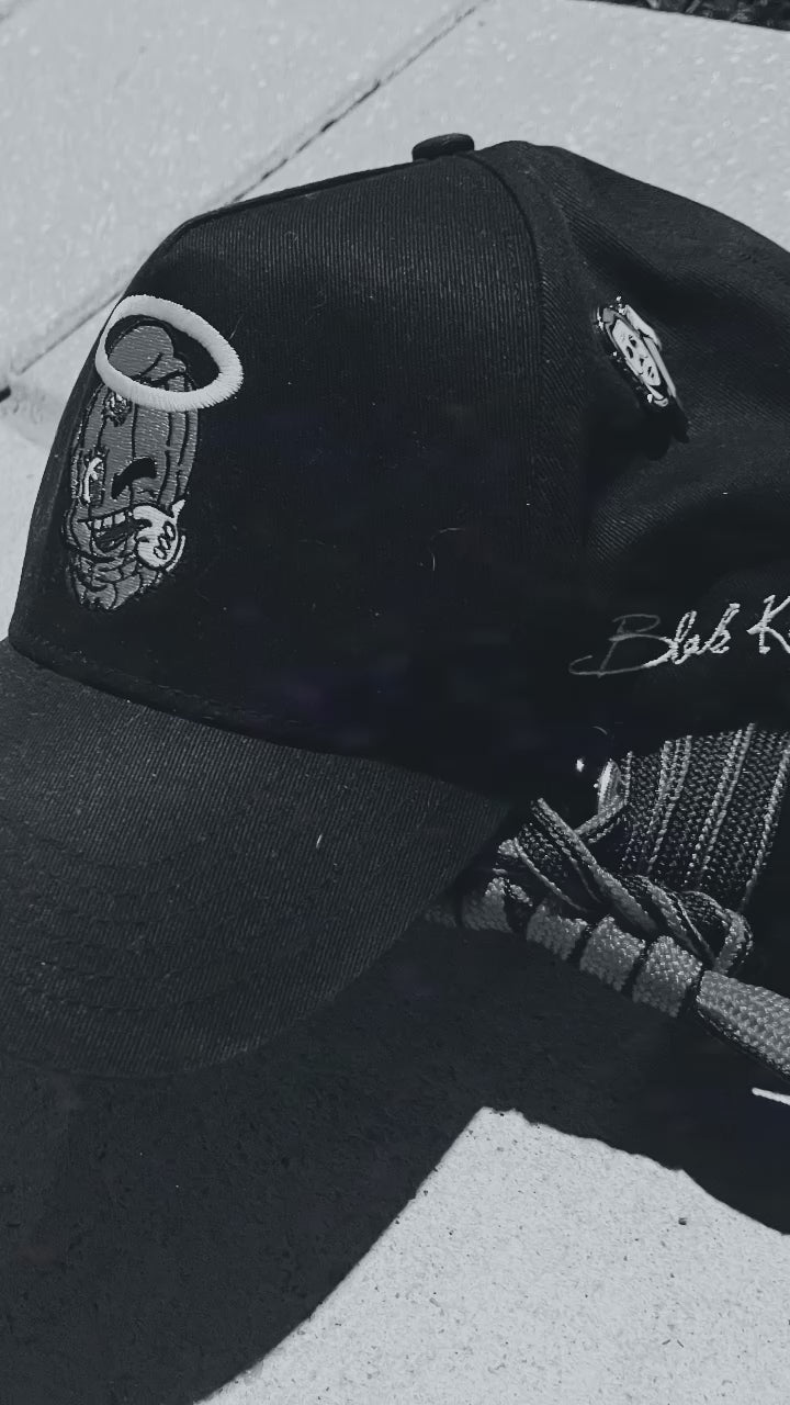 Here we have a black snapback bearing our flag ship mascot “Junebug” as a Japanese Oni. Junebug is wearing an orange ski mask, green eyes, gold teeth, and his accompanied by roses